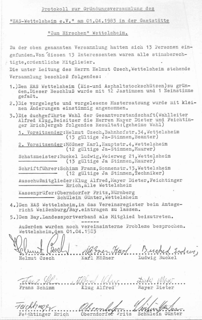 Vereinsgründung 1983 von 36 Mitgliedern und 2 Nichtmitgliedern